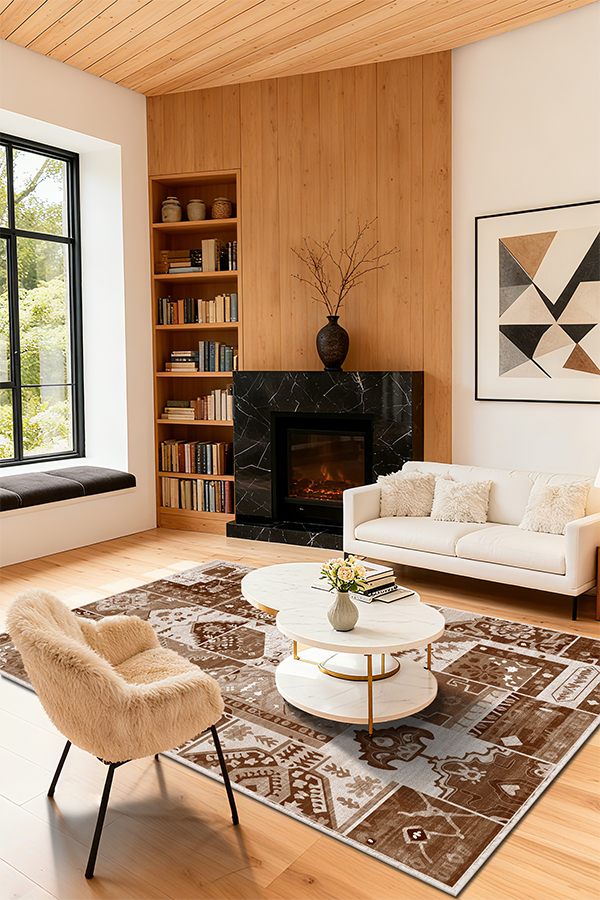 Mid-Century Modern Pattern Area Rug for living room, showcasing vibrant modern patterns in colorful hues. The mid-century style blends retro charm with contemporary flair, ideal for stylish living spaces.